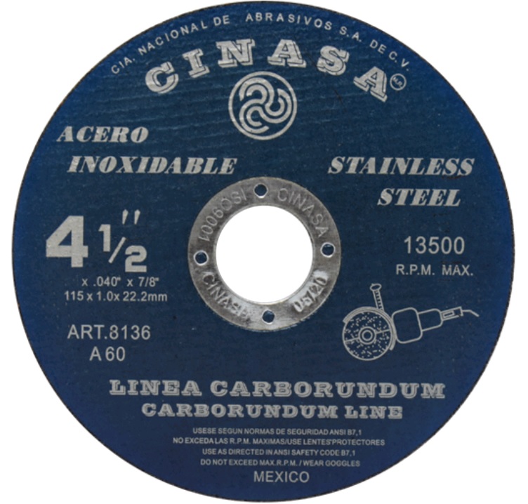 DISCO DE CORTE CINASA 115X1.0X22.2 ACERO INOX.